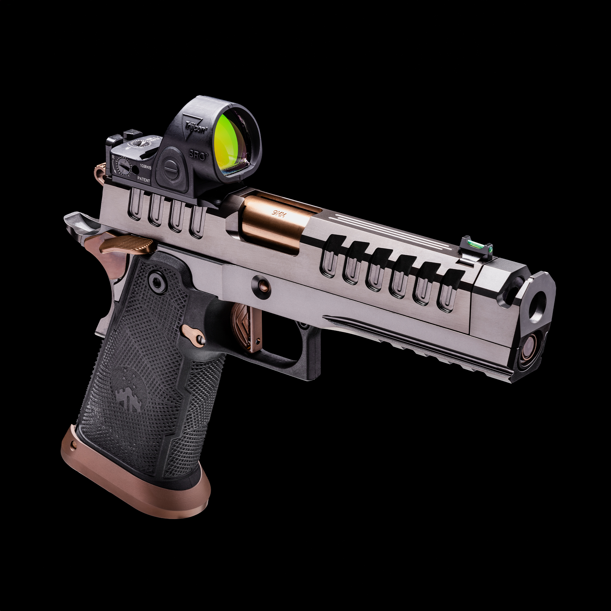 The APACHE double-stack 1911 is expertly precision-machined with a stainless steel frame and a 4.25-inch 416R stainless steel slide. Designed for performance, it features tactical-profile grips, a flared double-stack magwell, a crisp trigger pull, and ambidextrous safety controls for enhanced versatility. Coated with WATCHTOWER's proprietary buttery slick PVD finish, it delivers exceptional corrosion resistance, even in harsh environments, and ensures effortless maintenance. This advanced PVD coating is applied to the slide, barrel, frame, and all major components, creating a durable, rust-resistant surface engineered to withstand saltwater exposure and offer lasting reliability.